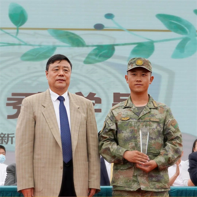 校领导为军训优秀指导员颁奖