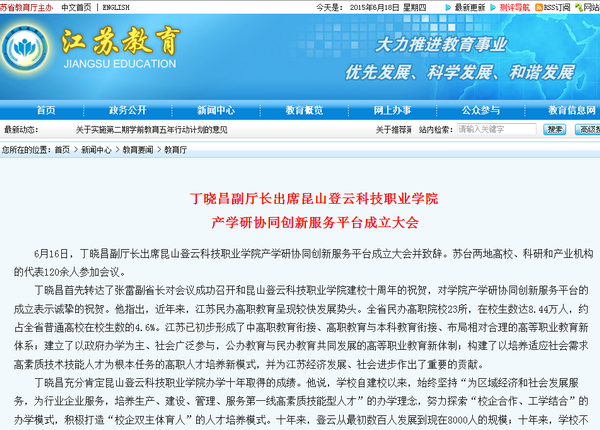 丁晓昌副厅长出席登云学院产学研协同创新服务平台成立大会—江苏省教育厅官网报道